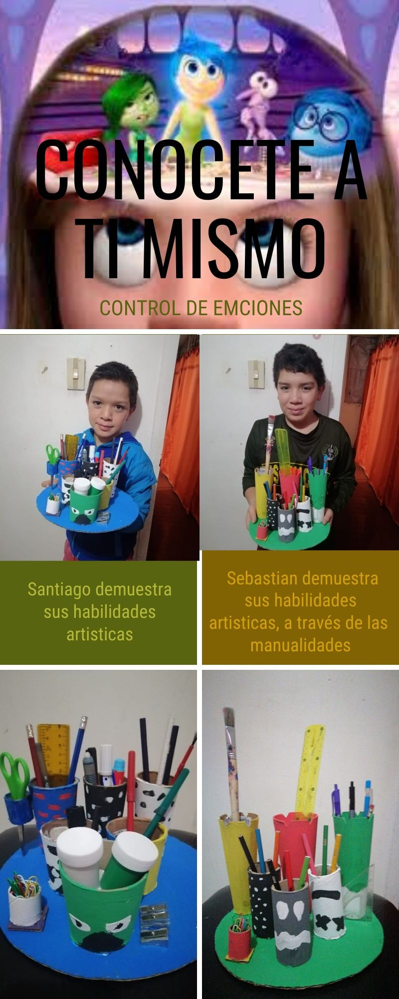 Experiencia: Teniendo en cuenta el cuidado al medio ambiente y el desarrollo de las habilidades artísticas, se invita a realizar una manualidad artística con materiales que todos tienen en casa y plasmando el control de emociones.